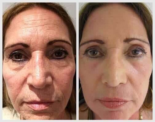 - efekat zatezanja/poboljšanje zategnutosti kože lica i jasne konture lica