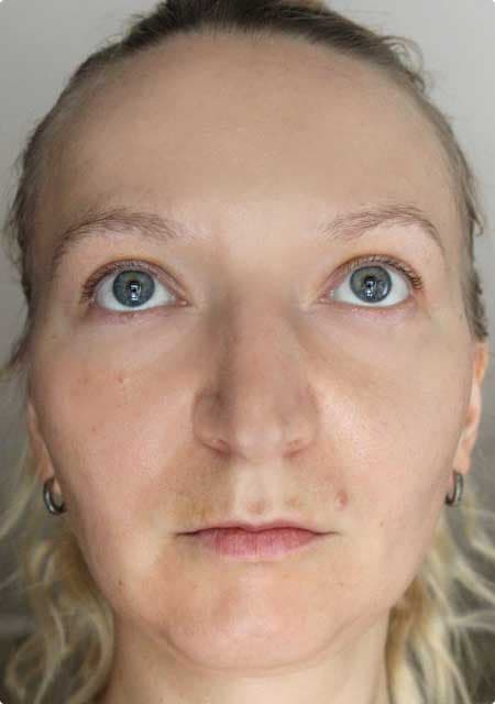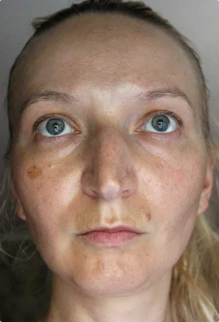 Koža mi je glatka i svilenkasta. Lice kao da sam bila na zatezanju, oblik je jasniji i izraženiji: jagodice, podbradak se ne vidi. A pigmentacijske fleke su se izednačile sa bojom kože.